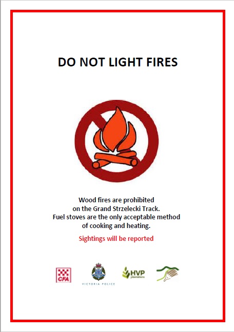 THERE IS A NO WOOD FIRE POLICY ON THE GRAND STRZELECKI TRACK