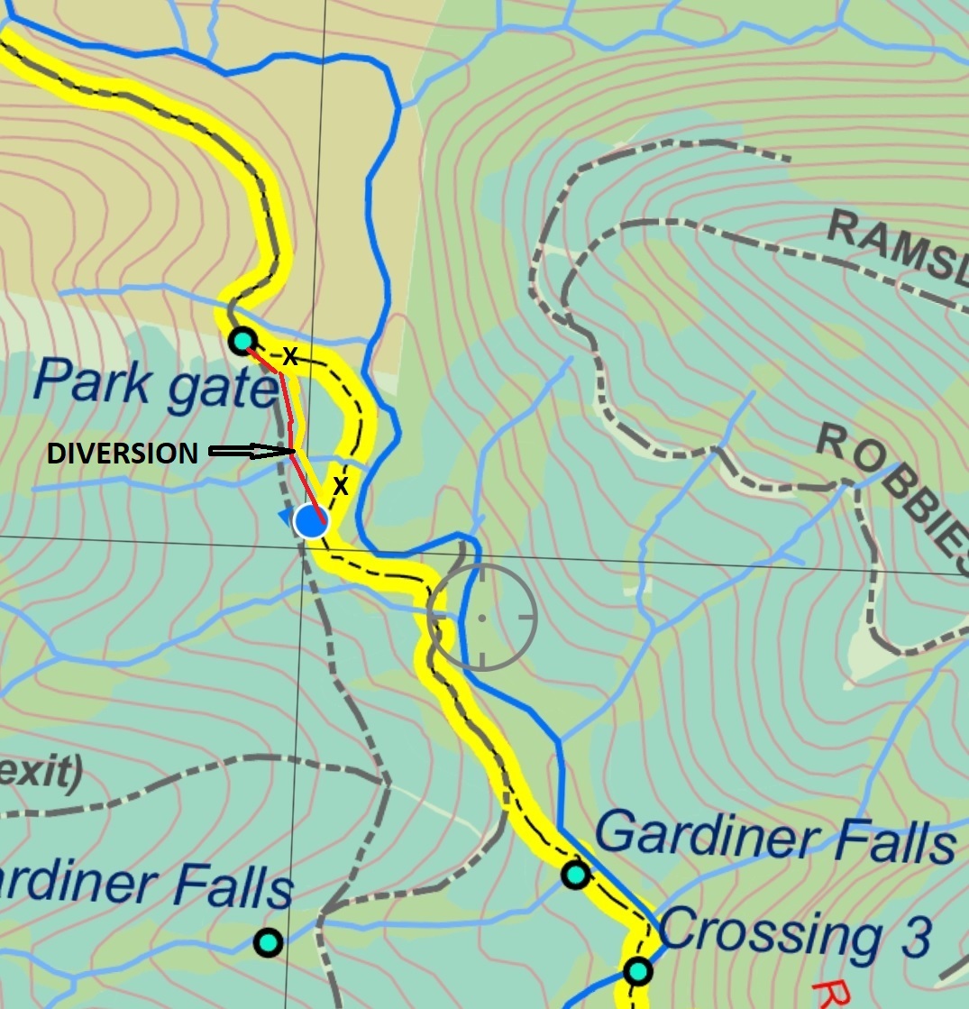 CURRENT TRACK DIVERSION ON WILD CHERRY TRACK MACKS CREEK LOOP